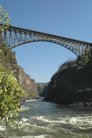 Die Eisenbahnbrücke, die Sambia mit Simbabwe verbindet, ist die welthöchste Bungee-Sprung stelle. Todesmutige, die 120.- US Dollar pro Sprung hinblättern, erleben wohl den absoluten Adrenalin - Kick, wenn sie sich 111 Meter über dem Sambesi in die Tiefe stürzen.